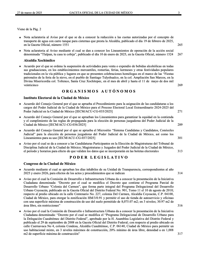 Por otra parte, la Gaceta Oficial de la Ciudad de México informó el 27 de marzo, que en Xochimilco se tendrán restricciones con respecto a la venta y consumo de alcohol durante abril y mayo debido a la Feria de la Nieve y fiestas patronales de los distintos barrios.