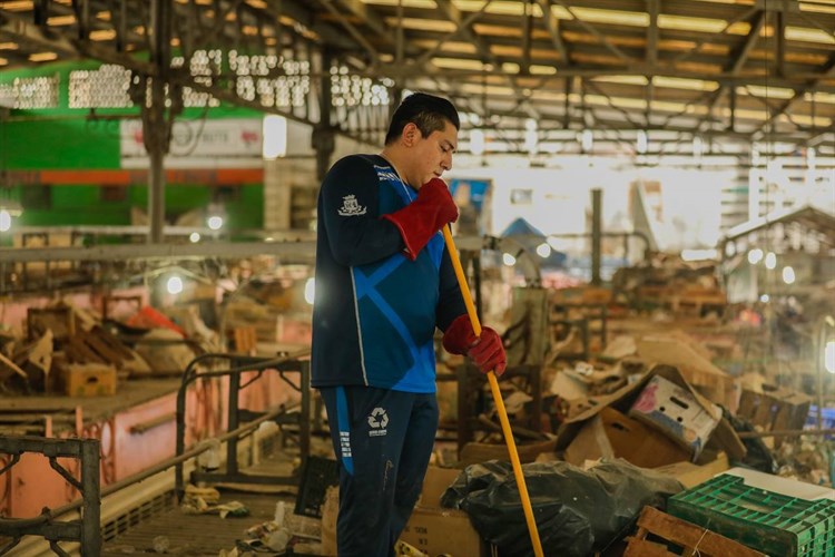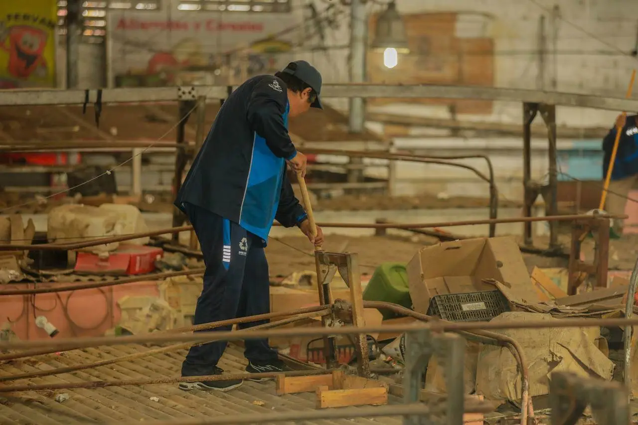 Los trabajadores municipales acudieron al lugar el domingo por la mañana para retirar residuos que estaban acumulados en los techos del mercado y se logró recolectar aproximadamente 32 metros cúbicos de desechos con un peso de casi tres toneladas.