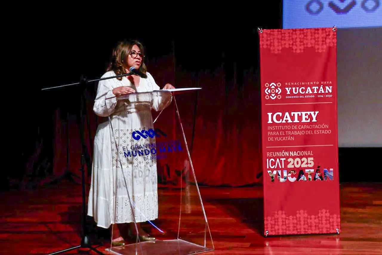MÉRIDA, Yucatán.- Durante la Reunión Nacional de Institutos de Capacitación para el Trabajo (ICATS) 2025, celebrada en el Gran Museo del Mundo Maya en Mérida, la titular de la Secretaría de las Mujeres (SEMUJERES), Sisely Burgos Cano, destacó la urgencia de incorporar la perspectiva de género en la oferta educativa.