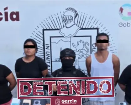 Operativo Escudo García: cuatro detenidos por robo en negocio de telefonía en García, Nuevo León; se hallaron drogas y artículos robados.