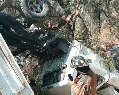 El conductor de un camión de carga sobrevivió de milagro tras caer a un barranco de 20 metros en la zona alta de Ecatepec.