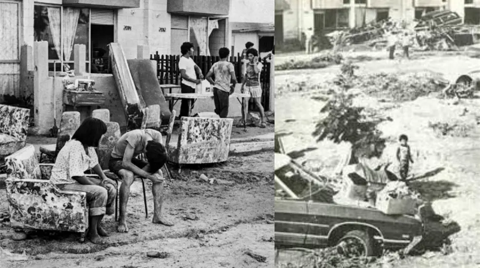 - El daño más grave ocurrió cuando la represa del arroyo El Cajoncito se rompió por la acumulación de agua, arrastrando cientos de casas y personas hacia el mar.