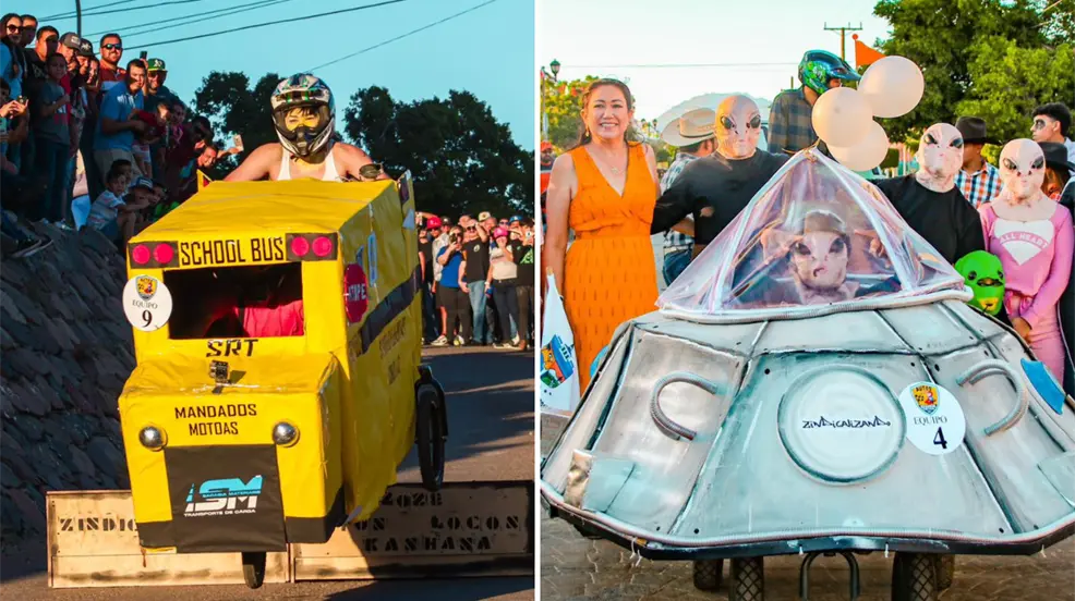 El ganador de la edición anterior, José Ángel Verduzco, junto a su equipo “Mandados Motdas”, confirmó su regreso con dos nuevos vehículos inspirados en la identidad local: una bombera y una panga calamarera, en homenaje a la reciente reactivación de la pesca de calamar en la región.