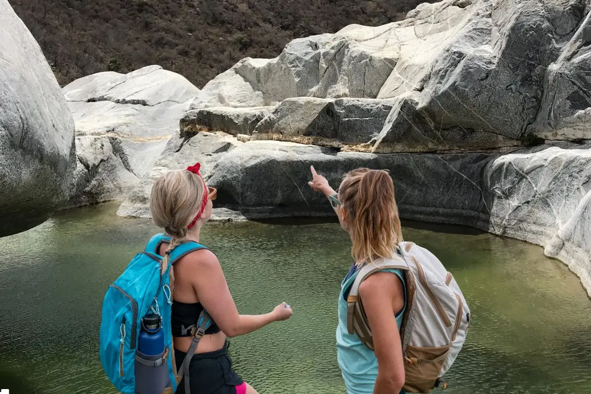 El trayecto también cuenta como parte del plan, porque atraviesa paisajes desérticos que contrastan totalmente con lo que te espera al final, pozas con agua en medio del monte.
