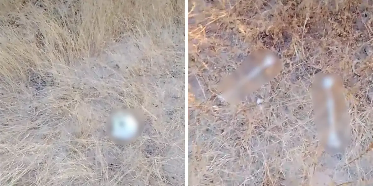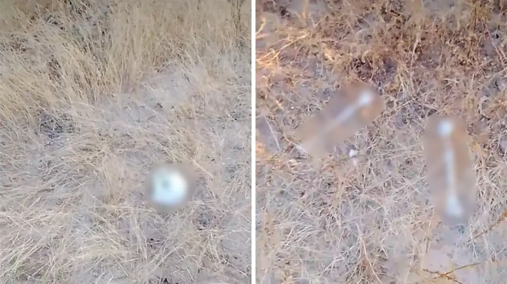 Así lo narró Manríquez durante la transmisión, en la cual, hizo una revisión del área mientras explicaba lo que había ocurrido, encontrando a unos metros del cráneo, parte de la mandíbula, fémur y columna.