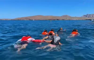 Cygnus y Romantic narran paso a paso la ruta que siguieron desde el malecón de La Paz hasta la isla, incluyendo el trayecto en lancha y los puntos donde decidieron detenerse para nadar, como fue San Rafaelito.
