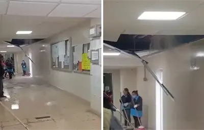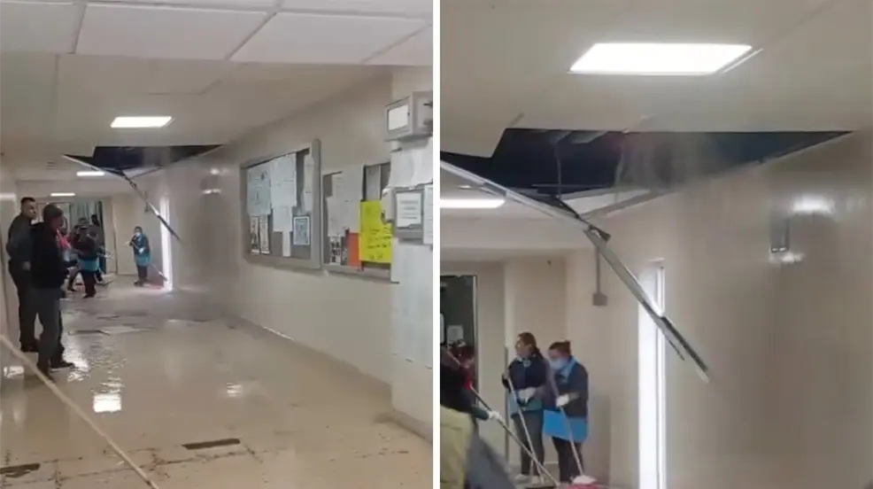 Un video difundido en redes sociales exhibió una fuerte filtración de agua dentro del Hospital General del IMSS Bienestar en Ensenada, Baja California.