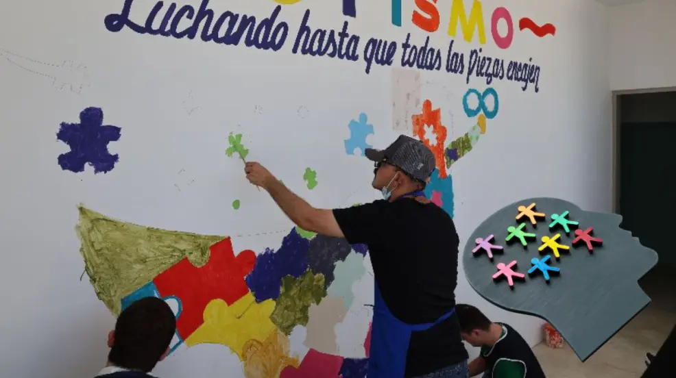 Por otra parte, también con motivo del Día Mundial de la Concientización sobre el Autismo, las y los beneficiarios de la Casa de Día para Personas con Discapacidad Motriz o Intelectual del Sistema Estatal DIF (SEDIF) pintaron un mural alusivo.