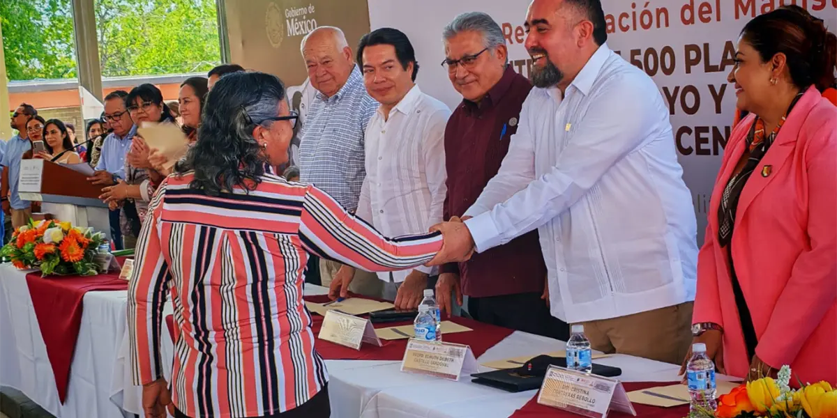 La ceremonia tuvo lugar en la Benemérita Escuela Normal Urbana (BENU) “Profesor Domingo Carballo Félix”, donde se reunieron autoridades federales, estatales y sindicales para formalizar la entrega de 500 plazas definitivas dentro del sistema educativo estatal.