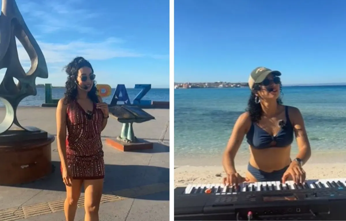 La cantautora Flor Amargo sorprendió a sus seguidores tras compartir en redes sociales su llegada a La Paz, Baja California Sur, donde realizó presentaciones espontáneas en espacios públicos como el malecón y la playa Pichilingue.