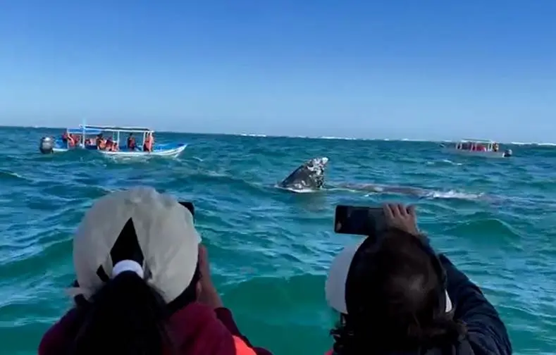 LA PAZ, Baja California Sur.- Recientemente, se viralizó un video en el que presuntamente los tripulantes de una embarcación en Puerto Chale nadaban junto a una ballena gris en las cercanías de Bahía Magdalena, una práctica prohibida por la normativa ambiental.