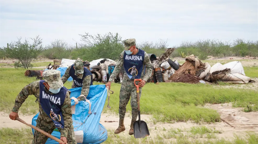 Después de 3 semanas de haberse denunciado el ecocidio en la comunidad de Las Pocitas, autoridades de los 3 órdenes de gobierno acudieron al lugar, a realizar la limpieza de residuos tóxicos, tras el acercamiento del huracán "Priscilla" a la península de Baja California Sur.