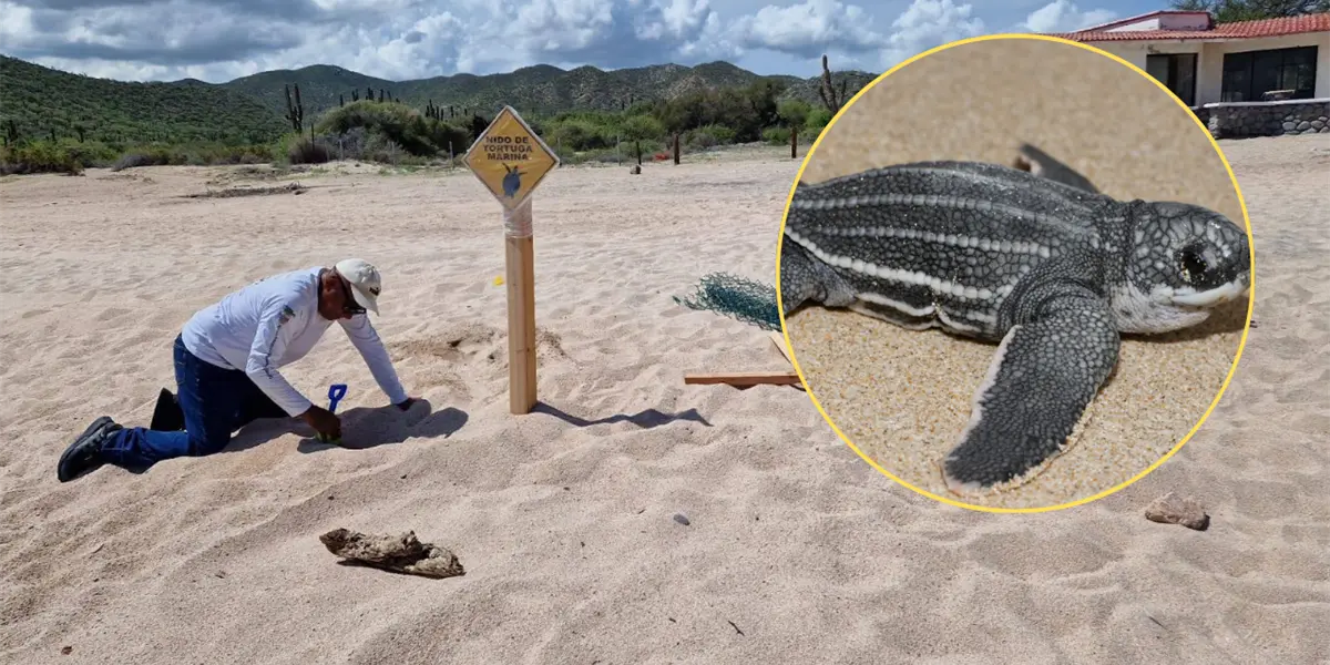 Reportan el primer nido de tortuga Laúd de la temporada 2025-2026 en Baja California Sur