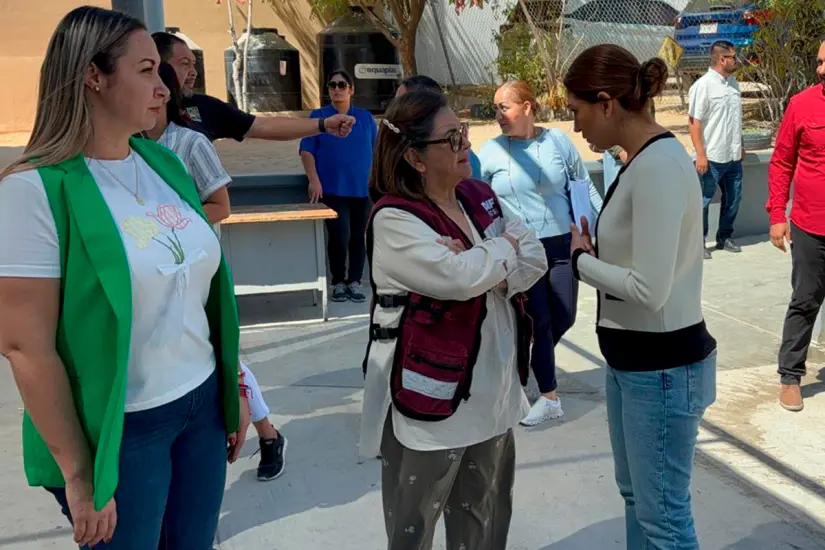 Patricia López Navarro, presidente del SEDIF BCS, hizo un recorrido de supervisión para valorar los avances en la instalación de una cocina móvil en la primaria Bicentenario de Independencia, ubicada en la colonia Paraíso del Sol, de la delegación de Cabo San Lucas.