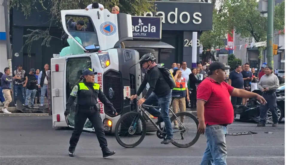 Ambulancia de Protección Civil vuelca en Eje Central tras fuerte choque en la Doctores, CDMX
