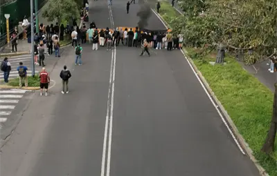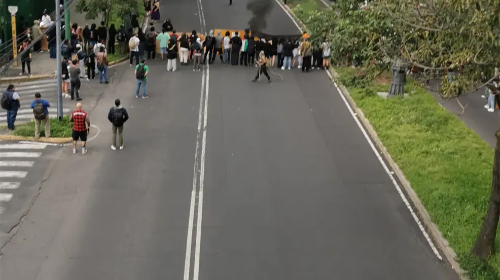De manera simultánea, en Avenida Juárez, en la zona centro de la Ciudad de México, otro grupo de inconformes mantiene un bloqueo total de la vialidad.