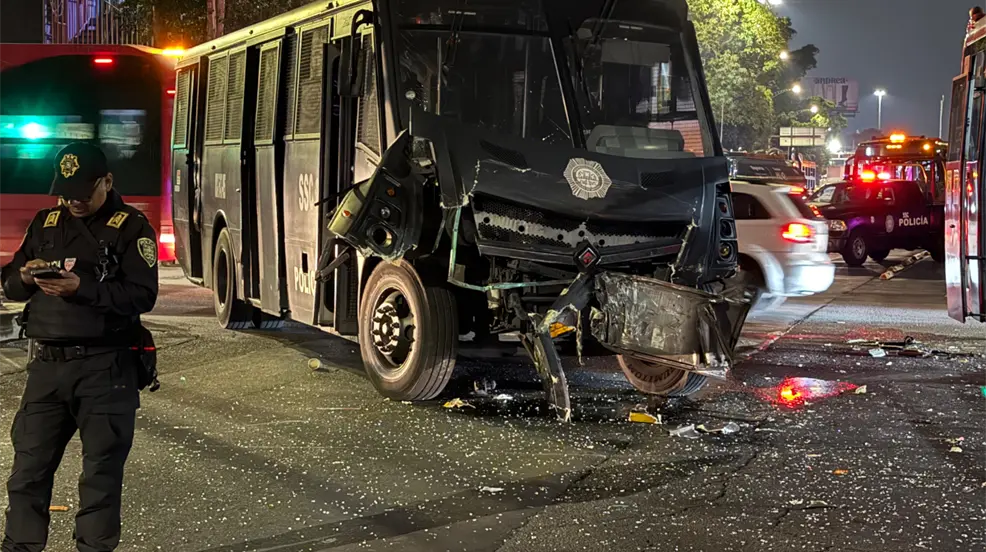Durante la tarde de este viernes, un camión de transporte perteneciente a la Secretaría de Seguridad Ciudadana (SSC) de la CDMX, y una unidad de la Línea 5 del Metrobús protagonizaron un fuerte choque en calles de la alcaldía Venustiano Carranza.