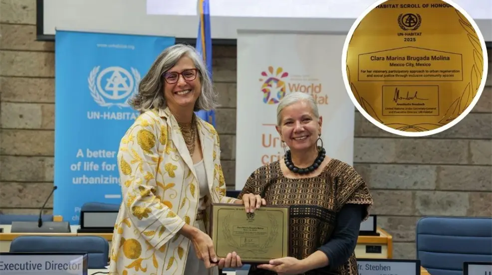 Clara Brugada, Jefa de Gobierno de la Ciudad de México, es reconocida con el Pergamino de Honor de ONU Hábitat 2025, el máximo premio global en desarrollo urbano por su proyecto UTOPÍAS.