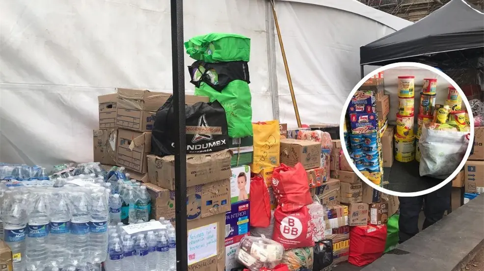 Se recibirán donativos como agua embotellada, alimentos no perecederos (atún, arroz, frijol, sopas, leche en polvo, aceite, café y azúcar), artículos de higiene personal (toallas sanitarias, pañales, jabón en barra, papel higiénico, pasta y cepillos dentales), medicamentos de uso común (paracetamol, ibuprofeno, antidiarreicos), material de curación, croquetas para mascotas, cobijas e impermeables.