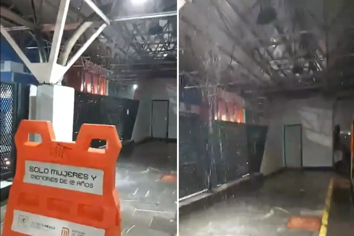 Una de las escenas más impactantes se registró en la estación Chabacano de la Línea 2, donde las fuertes lluvias provocaron filtraciones que formaron “cascadas” en el andén. En un video difundido en redes sociales, se observa un tren esperando en la estación mientras el agua cae desde el techo.