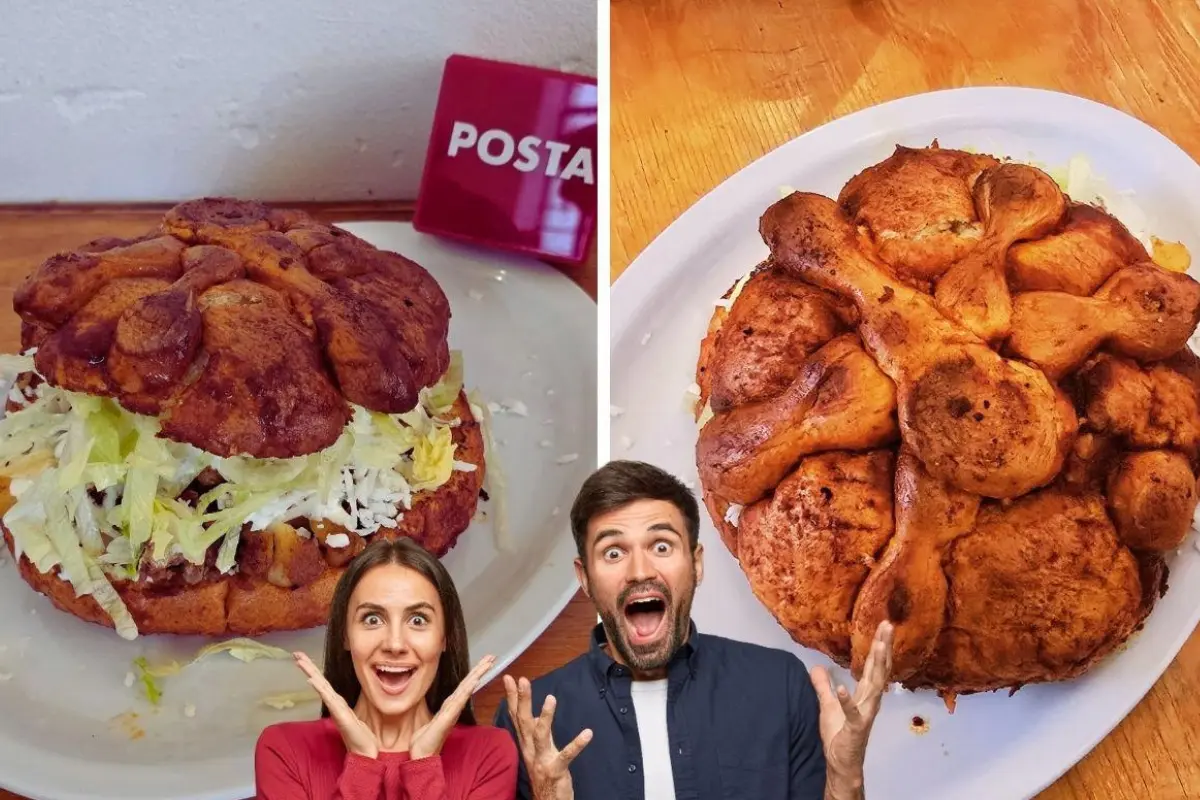 El local es famoso por sus platillos gigantes tiene esta temporada el famoso “pambamuerto”, un pambazo hecho con pan de muerto en la CDMX.
