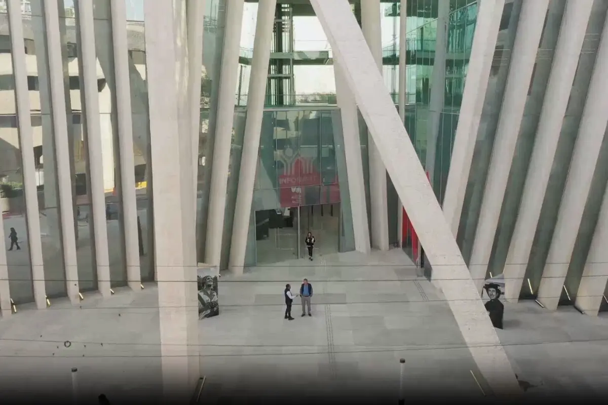 Este recinto se aloja en un edificio de arquitectura imponente, con una fachada de concreto y columnas de gran tamaño, obra del reconocido arquitecto Teodoro González de León.