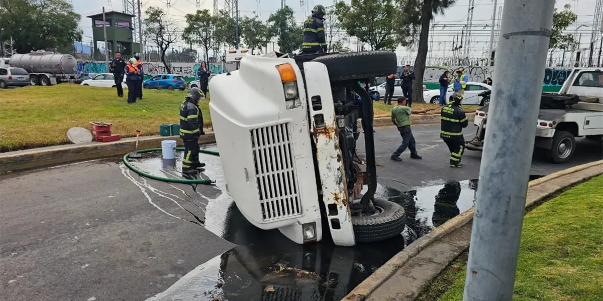 Otro tipo de volcadura de un vehículo provocó la movilización de servicios de emergencia en la alcaldía Iztapalapa. Tras el reporte del incidente no se registraron personas lesionadas.