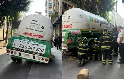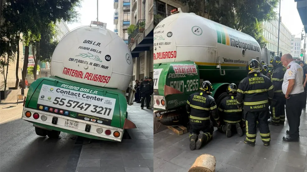 Pipa de gas cae en coladera del Centro Histórico y provoca caos vial en CDMX