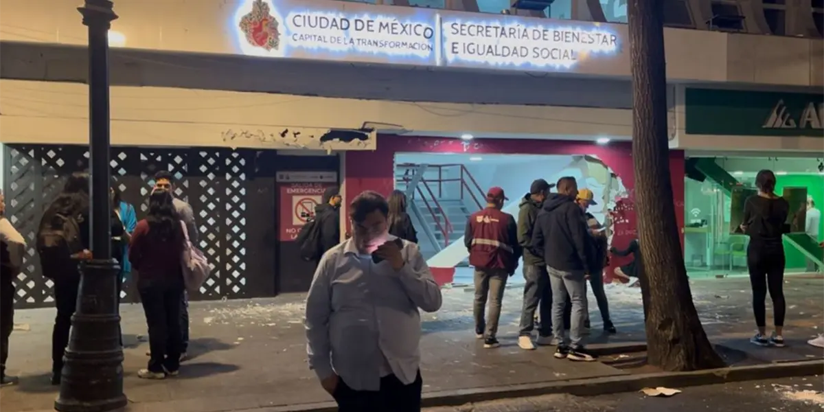 Protesta de personas trans genera destrozos en edificio del Bienestar en el Centro de la CDMX