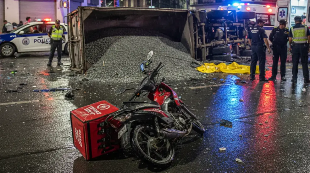 Una motociclista falleció tras ser impactada por un tráiler que transportaba grava en uno de los cruces más transitados del sur de la Ciudad de México.