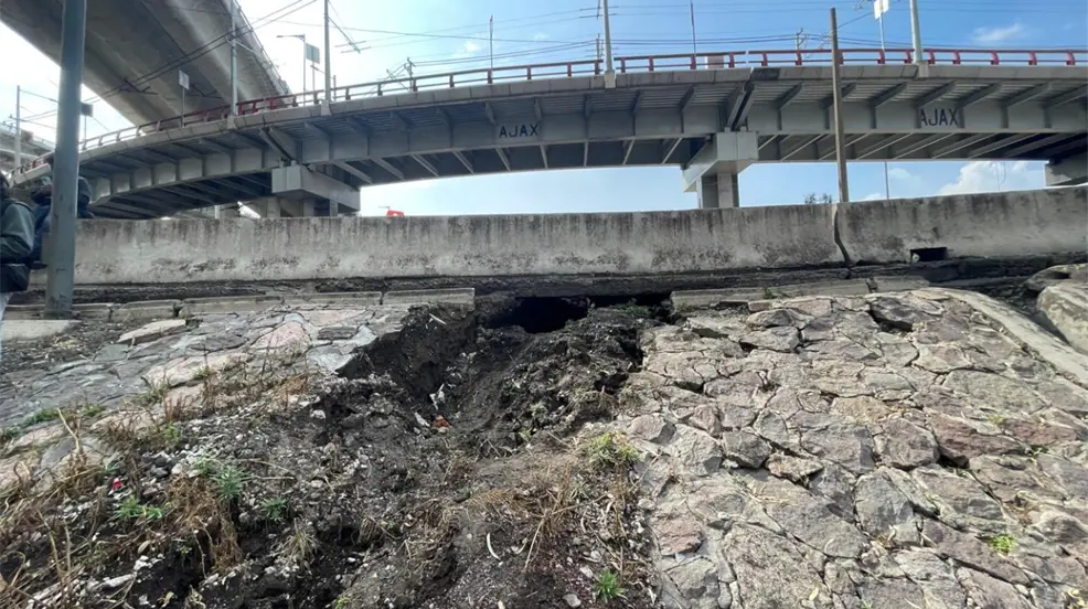 El socavón se ubica a unos metros del lugar exacto donde el pasado 10 de septiembre ocurrió el trágico accidente en el distribuidor vial de la Concordia.