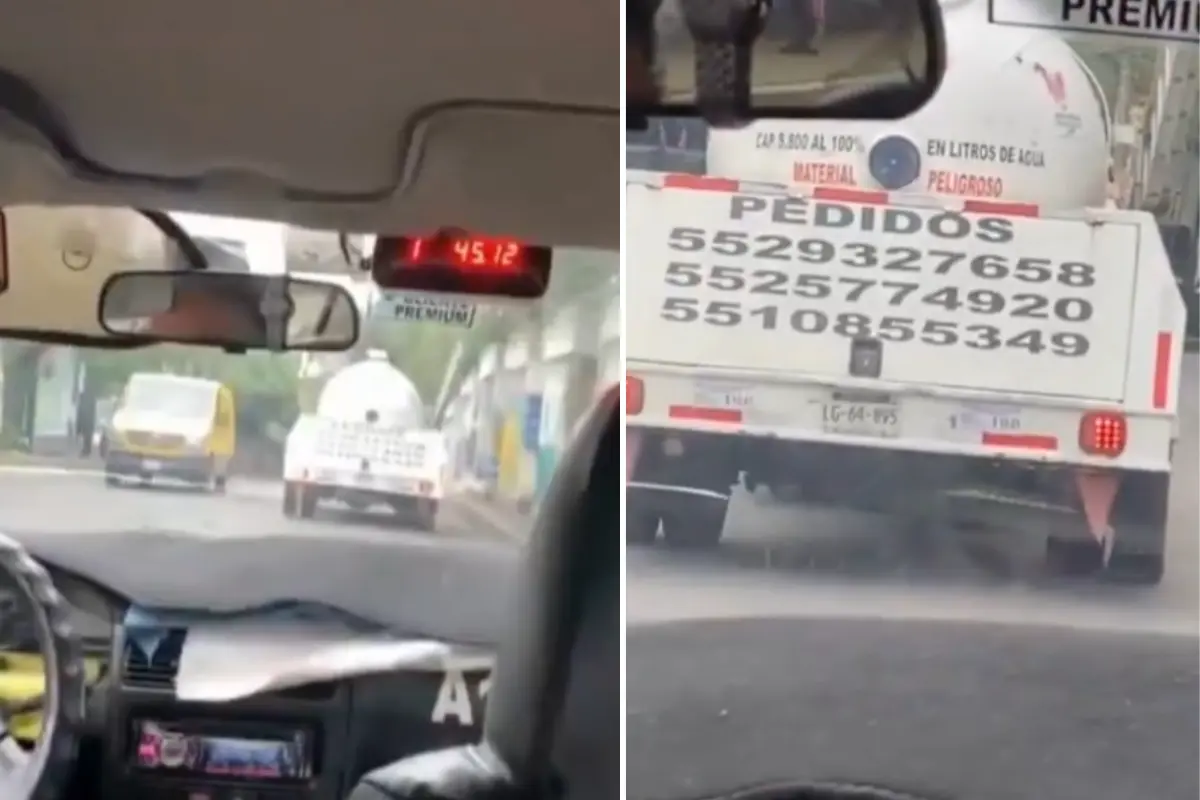 VIDEO | Pipa de gas es captada circulando con la llanta ponchada cerca del Estadio Azteca en CDMX