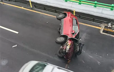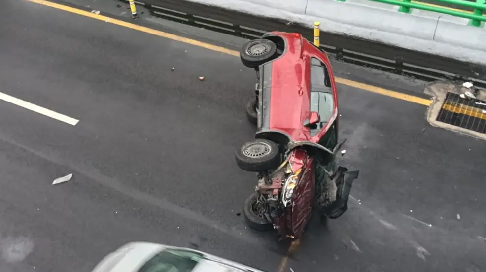 De acuerdo con los primeros reportes de las autoridades, el conductor de un Chevrolet Trax color rojo circulaba a alta velocidad cuando perdió el control del volante y se impactó contra un muro de contención, lo que provocó que la unidad terminara volcada sobre uno de sus costados.