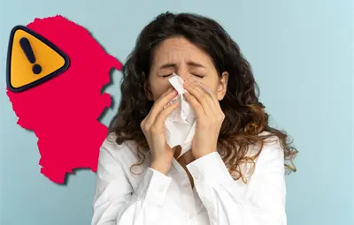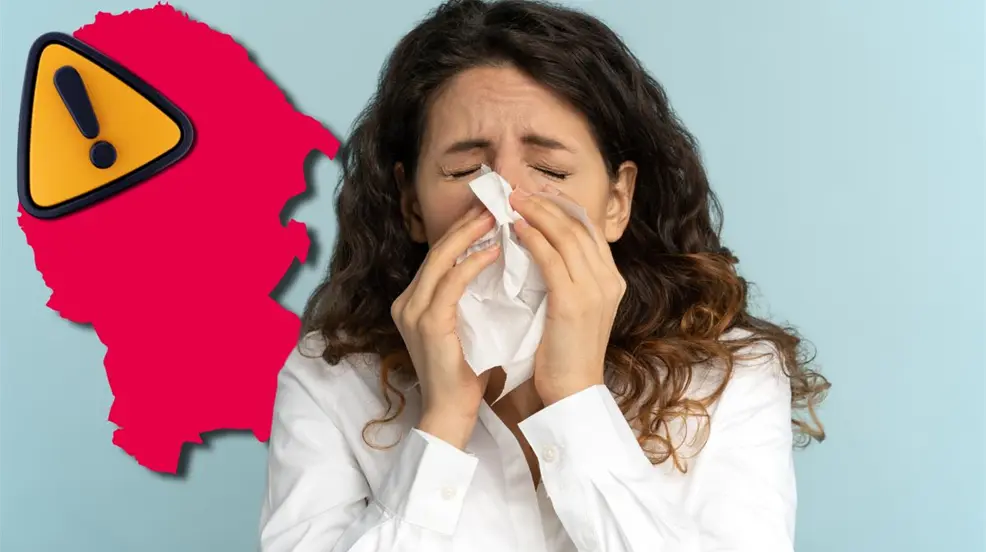 Mujer con sintomas de influenza ejemplificando la alerta en Coahuila / Foto: Composición de Canva