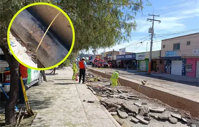 Una cuadrilla de trabajadores de la empresa encargada del proyecto del Agua Saludable realizó la reparación de la tubería afectada.