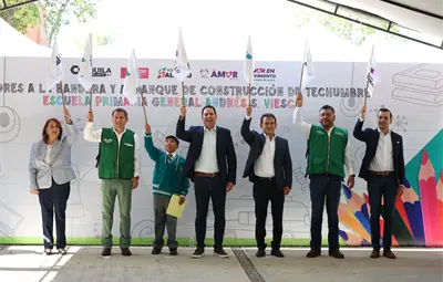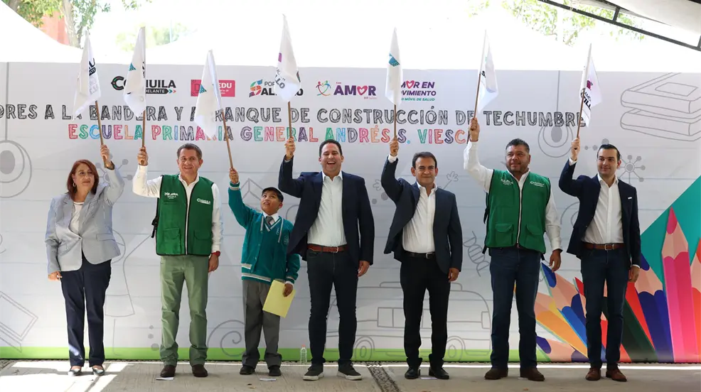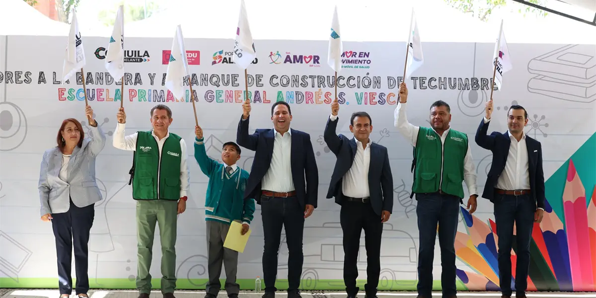 Con una inversión de 2.7 millones de pesos, el alcalde Javier Díaz González inició los trabajos de la techumbre en la escuela primaria General Andrés S. Viesca, durante la ceremonia de honores a la bandera.