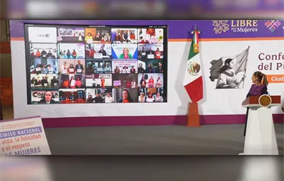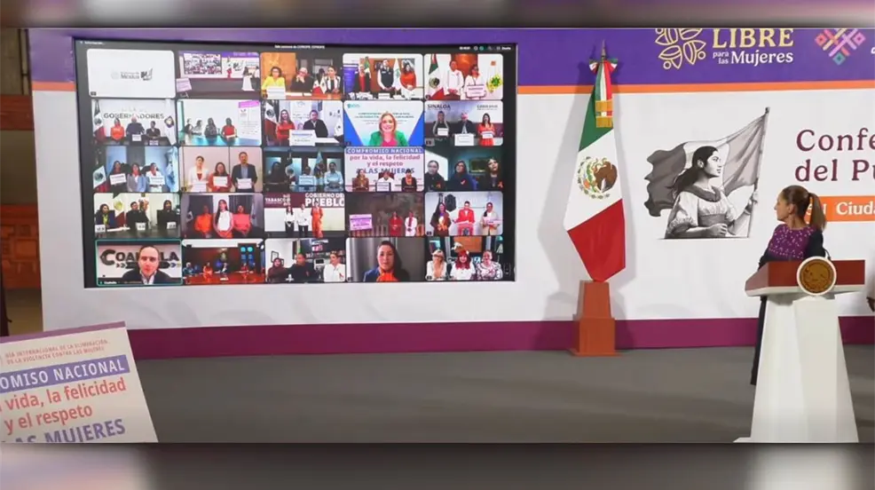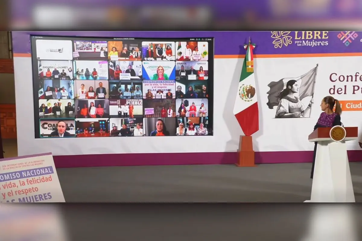 Para cerrar la exposición, se realizó un enlace en tiempo real con los gobernadores de las 32 entidades, quienes enviaron un mensaje breve sobre su compromiso para erradicar la violencia contra las mujeres.