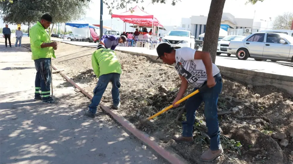 Brigadas municipales realizaron acciones de deshierbe y retiro de basura en el bulevar Venustiano Carranza, en el tramo que va del bulevar Francisco Coss al Luis Donaldo Colosio.