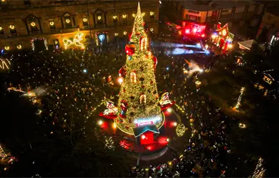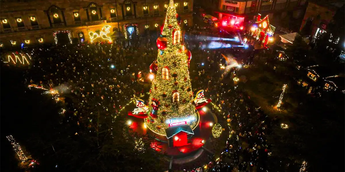 El espíritu navideño llegó a Saltillo con el encendido del majestuoso Pino Navideño en la Plaza de Armas, un evento que dio paso a Villamagia 2025.
