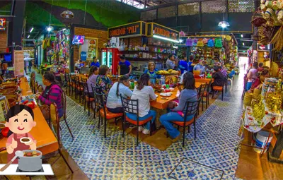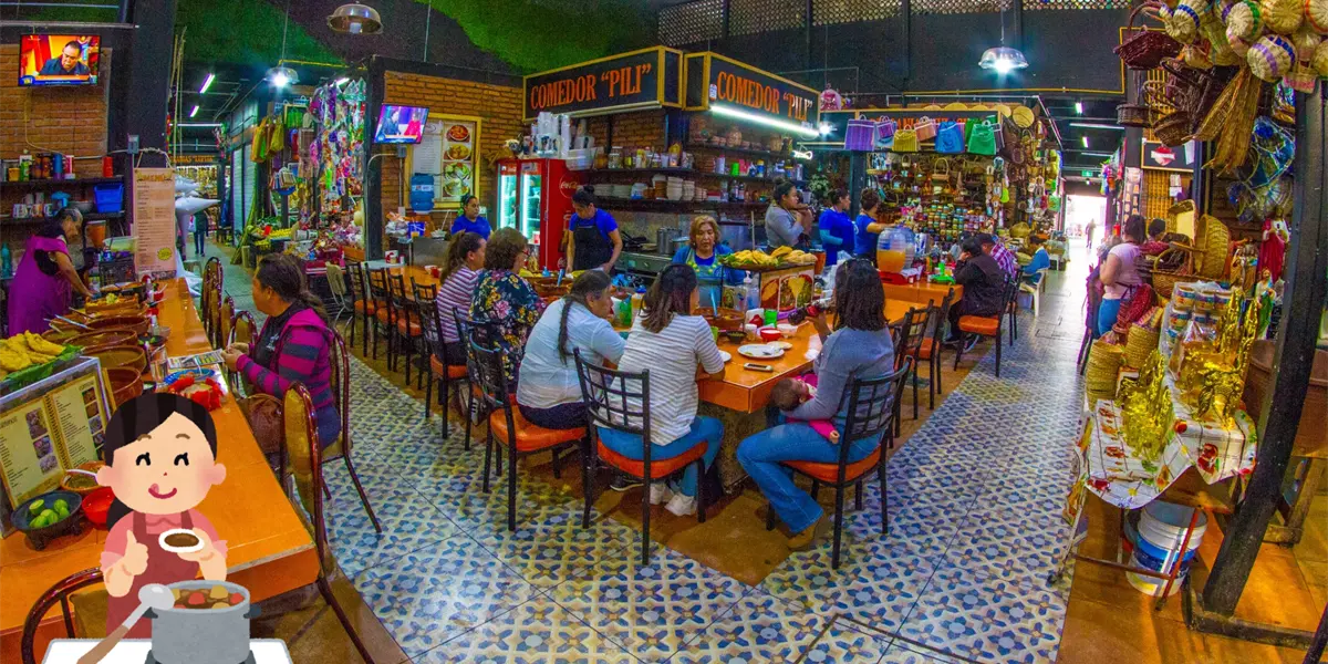 En este mercado tradicional, además de tener esta rica comida puedes encontrar artesanías, ropa típica y productos locales, incluyendo los famosos alacranes vivos o en algún souvenir.