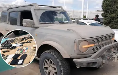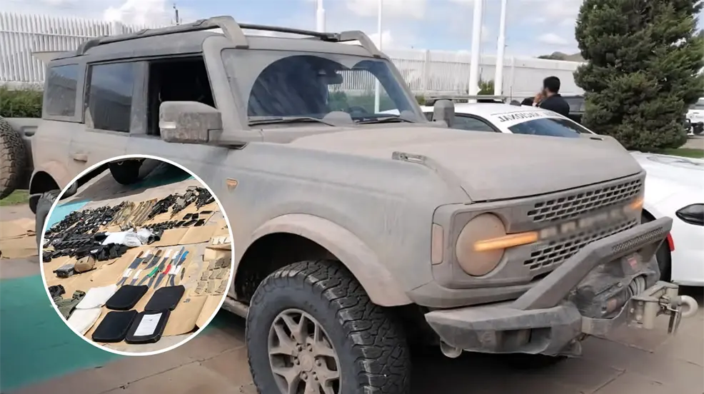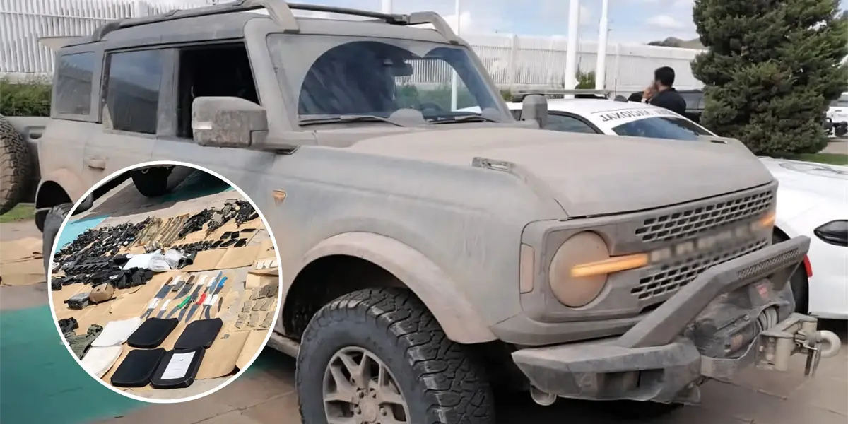 Los hombres viajaban en una camioneta Ford Bronco sin placas y vidrios polarizados, razón por la que los elementos les pidieron detenerse. Posteriormente, observaron que el copiloto portaba un arma larga.
