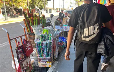 De igual manera, en el corredor Constitución y a las afueras de los mercados, como el mercado Gómez Palacio, se observa a algunos locatarios con mesas y demás indumentaria, ofertando productos, principalmente pirotecnia, papel para regalo y otros elementos decorativos.