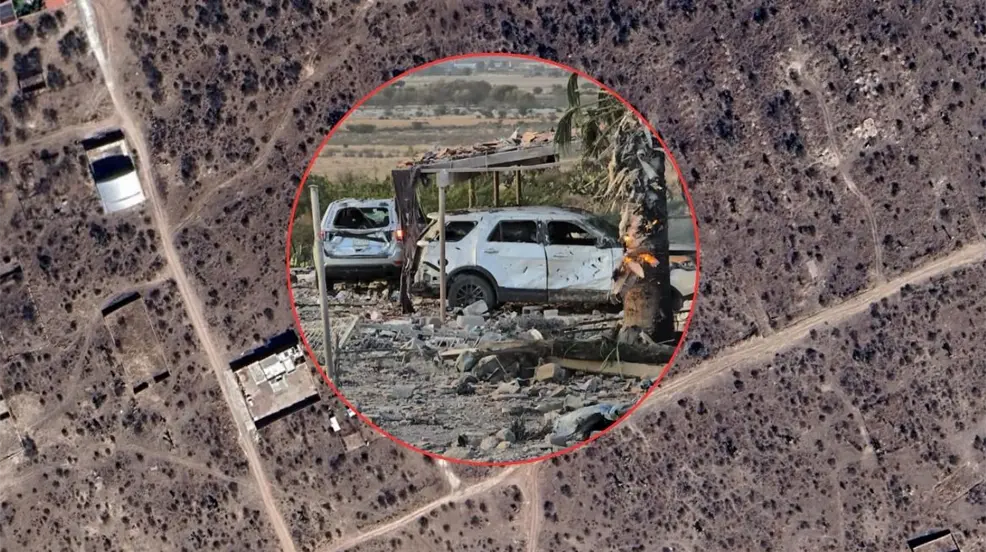 Esta cuenta con un tejabán para estacionar vehículos (donde estaban dos unidades que fueron destruidas por la explosión) y lo que parece ser una pequeña casa, de alrededor de 100 metros cuadrados.