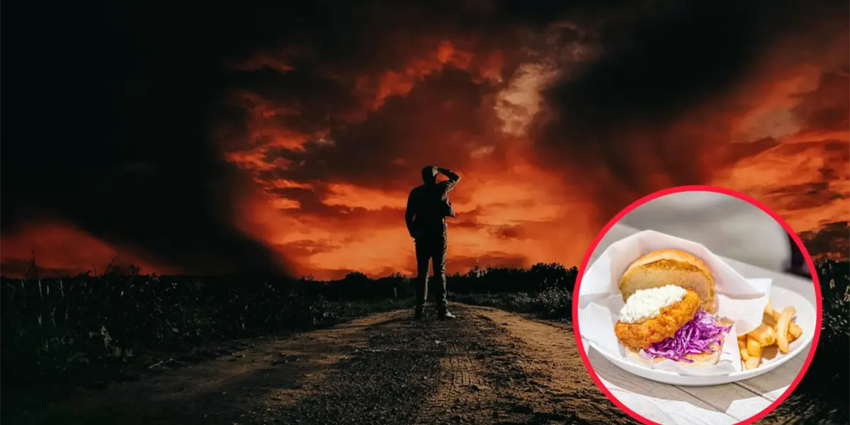 Hamburguesa y pollo con salsa especial de Stranger Things