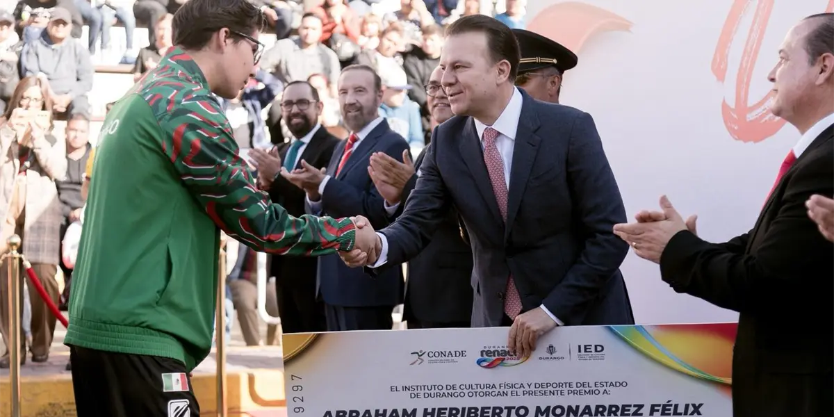 Este 20 de noviembre, durante el desfile deportivo en la ciudad de Durango, el gobernador Esteban Villegas hizo entrega de un reconocimiento, así como un importante estímulo económico a los ganadores del Premio Estatal del Deporte.