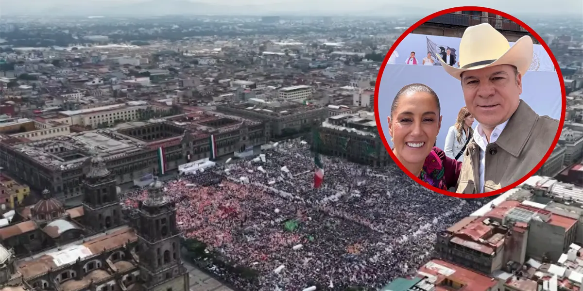 El gobernador de Durango acude al zócalo capitalino para celebrar el primer año de la presidenta Claudia Sheinbaum.