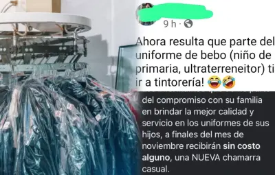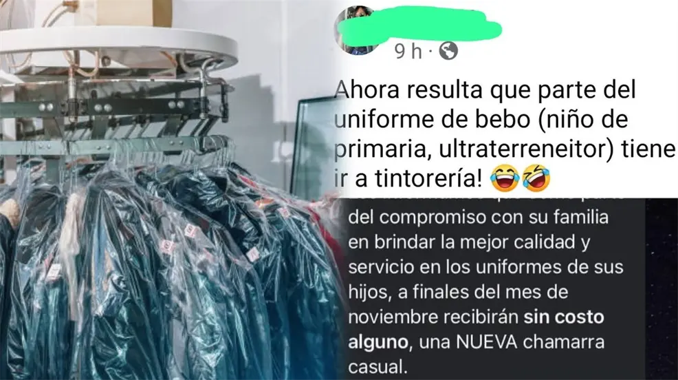 La propia usuaria expuso: "Ahora resulta que parte del uniforme de bebo (niño de primaria, ultraterreneitor) tiene que ir a tintorería", expresó.