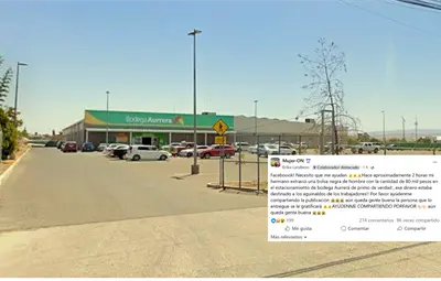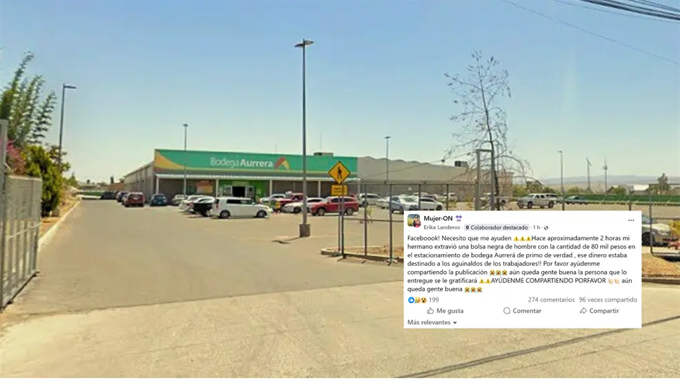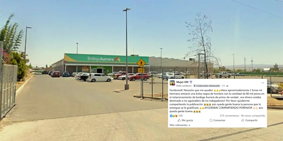 La publicación la hizo Erika Landeros, quien es miembro de este grupo, quiex explicó que el dinero lo perdió su hermano este 16 de diciembre en el estacionamiento de la tienda Bodega Aurrerá, ubicada en la zona de Primo de Verdad.