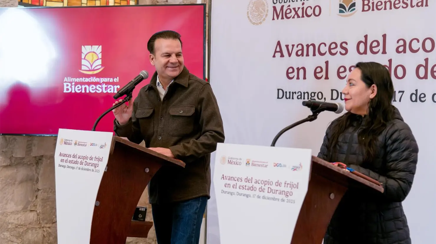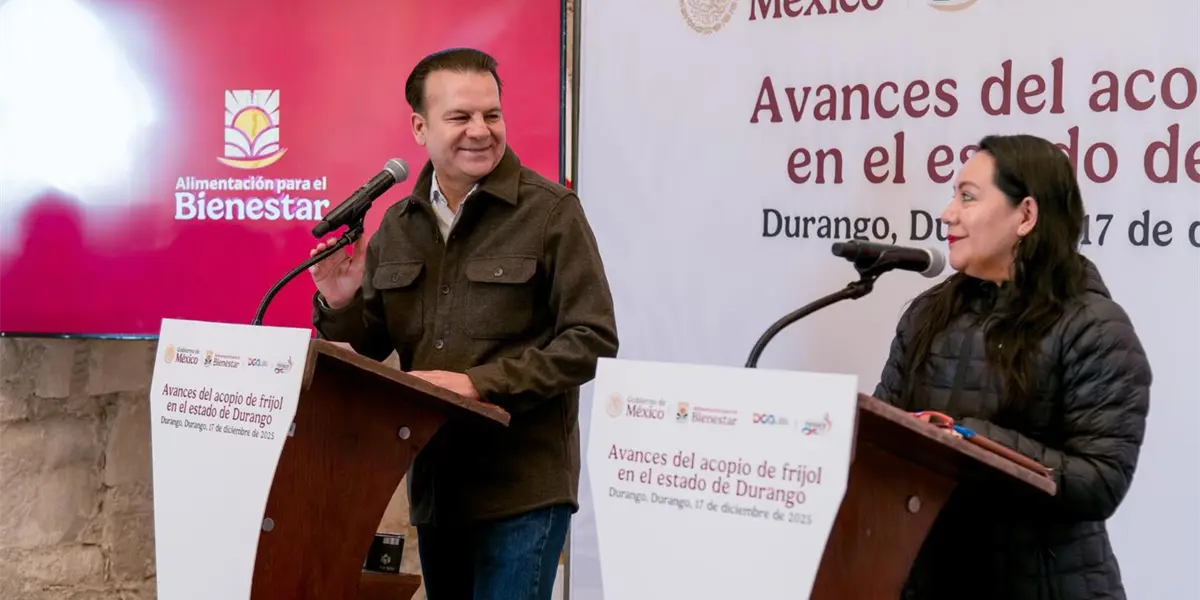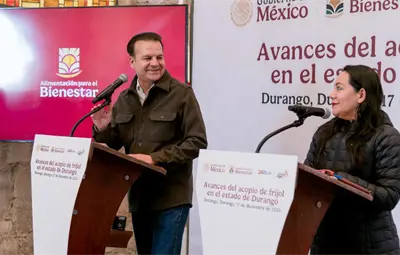 Esteban Villegas Villarreal, gobernador de Durango, y María Luisa Albores, directora General de Alimentación para el Bienestar, anunciaron que se acopiaran 40 mil toneladas de frijol en la entidad.
