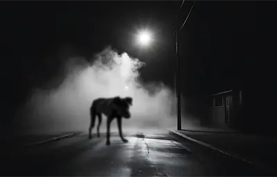 Se trataba de un cánido oscuro, enorme, que miró fijamente al conductor con una luminosidad inquietante en sus ojos, profundos e iracundos. Fue demasiado tarde para frenar, por lo que claramente pudo sentir cómo golpeó al perro y luego le pasó encima.